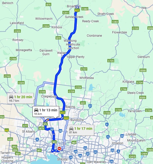 The map below show the campus and route via car from Flinders Street Station.